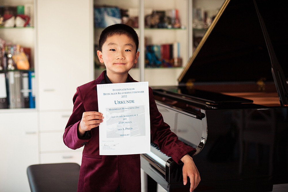 Der 8-jährige Maximilian Hongcheng Zhu (Klasse Uwe Balser) hat beim Internationalen Bitburger Klavier Wettbewerb vom 6. bis 8. Mai 2022 in der Altersstufe 3 (8-9-jährige) den 1. Preis gewonnen.